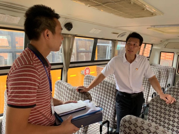 检查组一行首先对南头镇华晖学校、三鑫学校等7辆专用校车逐一进行了详细检查,重点检查了校车车况、应急设备配备、校车行驶路线、校车司机配备及持证等方面情况。在检查中发现的问题检查组都现场责令相关学校负责人要尽快整改。