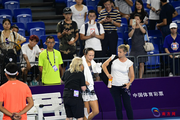 (南方网/讯 记者/朱江伟)9月18日晚,广州国际女子网球公开赛女单1/8决赛继续上演,中国金花彭帅对阵塞尔维亚小将斯托亚诺维奇。最终,彭帅以6-7(4)/6-2/0-6不敌斯托亚诺维奇。比赛末段,彭帅体力不支,但仍咬牙坚持完赛。