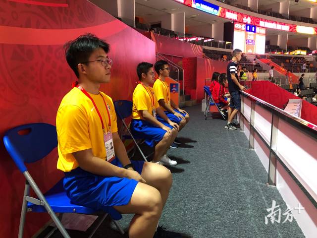 焦急踱步,紧盯着斜右侧的记分台,只见队友跑了过来,一把接过比赛数据,转身,倒计时开始——这是“小黄人”志愿者与时间的比赛。