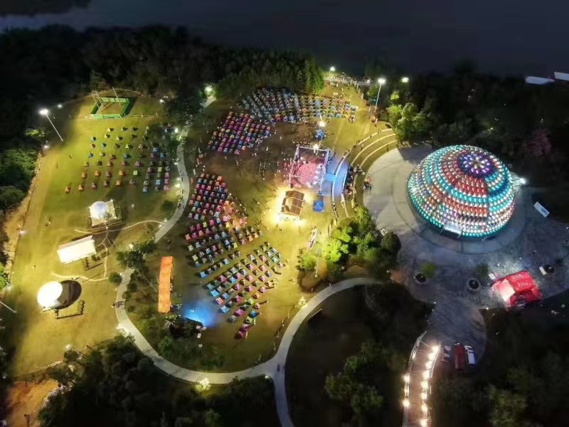 大会以露营体验、开营仪式、露营晚会等形式向珠三角乃至全国展示从化优质的山地户外资源及良好生态环境。活动现场用帐篷布置成“从化”造型字样,搭建香港赛马会马屋,突显地方特色及马元素,现场还设置美食、酒吧休闲区,安排了DJ音乐、乐队表演等精彩的文艺节目、浪漫婚礼、互动体验等,俨然一场星空下狂欢party盛宴。