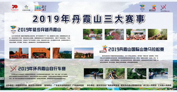 据悉,为深入贯彻落实国家关于粤港澳大湾区建设部署和省委、省政府“一核一带一区”区域协调发展战略,更好地将生态优势转化为发展优势,提升韶关旅游城市形象,韶关市政府在中国田径协会、广东省体育局、广东省文化和旅游厅等单位的指导下,将分别于11月17日、12月7日、12月15日,在世界“丹霞地貌”命名地——丹霞山举办2019年环丹霞山自行车赛、2019年徒步穿越丹霞山活动、2019丹霞山国际山地马拉松赛三项体育赛事活动。