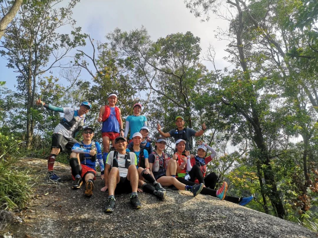 K1位开始,去到板樟山公园1340台阶位的这段中林道,略有起伏,飞人们仍然可以狂奔,因此基本捕捉不到他们的身影。但无论是飞人大部队还是跑得慢的收尾小分队的,都喜欢在白莲洞中林道爱心石这里留下合影。