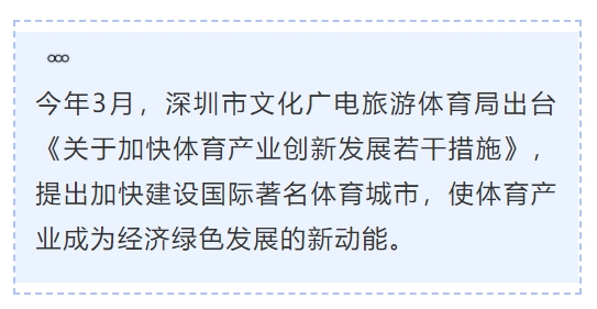 去年8月,《中共中央国务院关于支持深圳建设中国特色社会主义先行示范区的意见》正式发布,其中指出:“支持深圳举办国际大型体育赛事和文化交流活动,建设国家队训练基地,承办重大主场外交活动。”