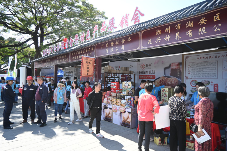 除了感受侨批文化,参与本站赛事活动的人还能全方位体验“潮人潮品”,感受“潮味”十足的文旅盛会。赛事活动期间,赏潮剧、潮州音乐、功夫茶艺,参观、体验铁枝木偶、核雕、大吴泥塑、毛笔、木雕、嵌瓷、推光金漆画、制茶技艺及壶艺制作等潮州非遗,现场还有潮派建筑模型展示、大美潮安及绿美潮安图片展览、潮州美食特产展销,此外潮安区书法家现场“送福”,身着古装扮演各种状元、书生、武士等角色的演员穿梭于龙湖古寨的“三街六巷”……潮州戏剧、音乐、工艺、民居、饮食、特产等“潮味”十足的内容让人全方位体验潮州文化的独有韵味。