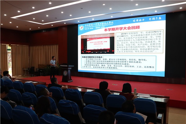 7月12日下午,中山一职全体教职工齐聚大会议室,召开了2018学年第二学期期末总结大会,校长龙卫平、副校长冯华彬及全体教职工参加了会议。