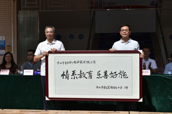 授人玫瑰,手留余香,奉献爱心,收获希望。板芙中学全体师生一定会充分珍惜中山市生力机电安装工程有限公司的深情厚谊,把这份关爱化作工作、学习中的不竭动力,努力办好学校!