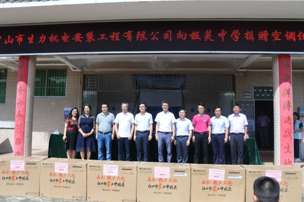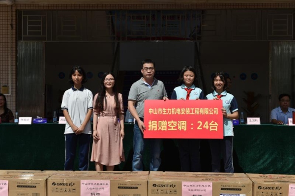 酷暑送清凉,浓浓助学情。7月5日,板芙中学举行了中山市生力机电安装工程有限公司空调捐赠仪式。板芙镇党委副书记、镇长赵锡雄,中共中山市委统战部副部长、中山市侨务局局长谭文辉,板芙镇党委委员李帝松,板芙镇党委委员周丽端,中山侨刊社主编温国科,板芙镇教育事务指导中心主任陈景新,中山市生力机电安装工程有限公司董事长阮志平,总经理林振炫,行政部经理王江英,板芙中学初一级、初二级学生及全体老师800多人参加了仪式,仪式由副校长黄仁才主持。
