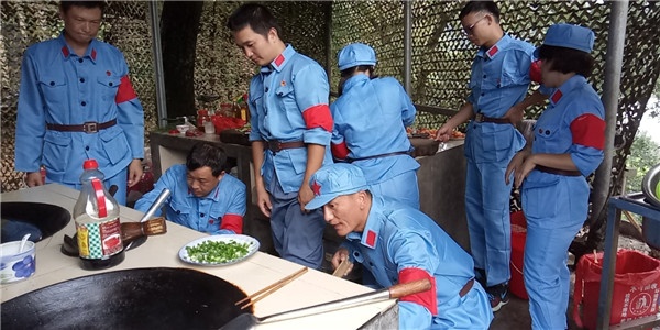 一大早学员们穿着整齐的红军服,来到井冈山红军训练场开始了红色拓展训练活动,在基地教官的带领下,学员们先学习了“三湾改编”的历史背景,根据“三湾改编”的特点及要求进行队伍改编。学员们在两位教官的指挥下被分成了两个团队,并选出团长、政委指挥系列团队活动,主要包括团队展示、伤员救护、自做红军餐、破译密码、齐心协力过草地、抢滩登陆等环节。第一环节是团队文化展示,两个团队在团长、政委的组织下制定了自己团队的团名、口号、团歌等并进行展示;第二环节是伤员救护,通过模仿红军战士受伤,战士们要通过自制单架将受伤战士送回营地;第三环节是学员们通过合作自做红军餐,体验革命先烈们自强不息的精神;第四环节是破译密码,通过游戏体验的方式让学员们体会到了团队领导的核心、团队目标、团队纪律在一个团队中的重要性,培养了各学员的创造性思维,提高了学员对问题的认识及解决问题的能力;第五个环节齐心协力过草地,分组比拼,展现团队合作的力量;第六个环节抢滩登陆,磨炼了各学员的意志,加强了各学员之间的沟通,培养了团队精神,让大家体会到合作共赢所取得的成果。活动中,每位学员都在挑战自己,战胜自己,展现了积极向上、团结一心、行为有序的蓬勃面貌。