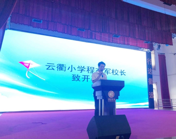 云衢小学程杰军校长致辞,代表学校及当地村委对开拓者团队表示热烈的欢迎,并表示将大力支持团队活动,同时对团队成员做出了几点要求,希望队员们尽快做好角色转变,肩负起为人师表的责任,做好表率和模范作用,并预祝本次的夏令营活动圆满成功。