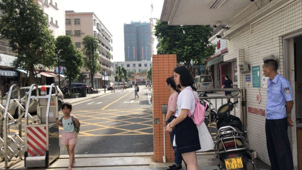 今天,来自广东外语外贸大学的开拓者队队员们正式与云衢小学学生见面。上午八点,家长陆续送学生来到学校,开拓者队队员们在校门口迎接。
