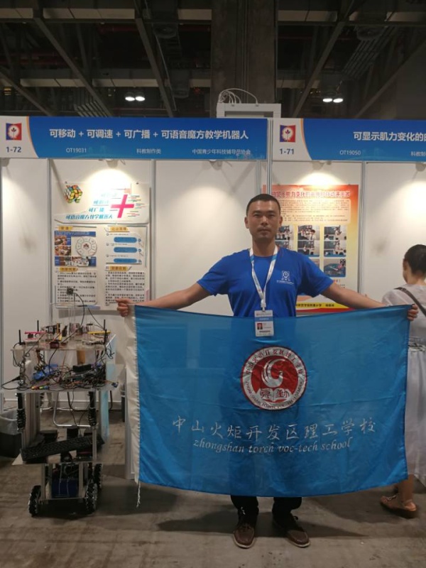 开发区理工学校何享贤老师代表广东出赛,经历了七天的布展、调试作品、评委问辩、公开展示,最终获得了二等奖的佳绩。