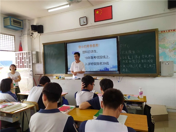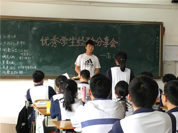 分享会主要从现高三年级不同类别的考生考虑,分别邀请了文科班、理科班、日语班、学考班、艺术班几类不同方向的优秀学子下到对应的班级进行针对性分享。