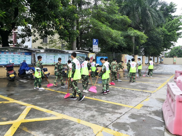 2019年8月26日上午,横栏中学初一级的同学们穿上志愿者服装,积极参加了由学校德育处组织的创文明城镇志愿服务活动。50多名新生以实际行动参与校内外的清洁服务,为美化校园献出自己的一份力量。