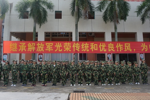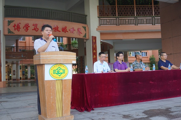 学校领导欧润添校长首先发表了热情洋溢的开营致辞。他对执行本次学前教育培训任务的全体部队教官表示热烈的欢迎和衷心的感谢,也向步入初中的新生们表示祝贺并表达了殷切期望。他说,新环境,新开始,新时代,新希望。学前教育培训,是同学们入学的必修课,是学校国防教育和爱国教育的重要组成部分。欧校长指出了培训的意义并提出要求,要求同学们一定要听从教官和班主任的指挥,严明纪律,克服困难,虚心学习,胜利完成培训任务,上好进入初中的第一课。通过培训,增强集体观念、加强组织纪律,磨炼意志品格,培养吃苦精神。欧校长又指出作为侨中人就应该用严明的纪律、坚强的意志、健壮的体魄去迎接初中三年的风雨洗礼,创造属于自己,属于侨中的辉煌。