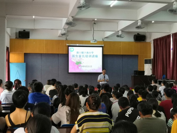 2019年8月31日,在港口镇下南小学报告厅进行了2019-2020学年新生家长培训活动,培训时间为一天,由少先队大队辅导员戴艳琳主持本次培训活动。