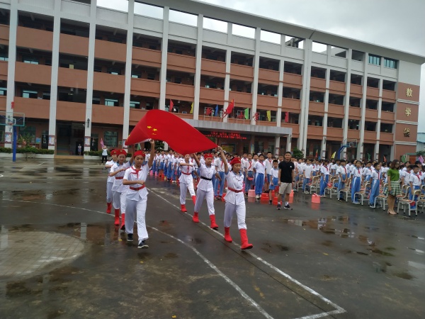 典礼开始,师生们着装整齐,精神焕发,随着雄壮的国歌响彻云霄,鲜艳的五星红旗高高飘扬,师生们面对国旗庄严敬礼。