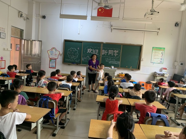 2019年8月29日,阳光明媚,秋高气爽,黄圃镇大岑小学迎来了一年级新生培训。学校领导班子梁庆堂副校长,梁转弟主任,梁桂香副主任,还有两位一年级的班主任以及几位负责老师早早地在校门口等候家长孩子们的到来。
