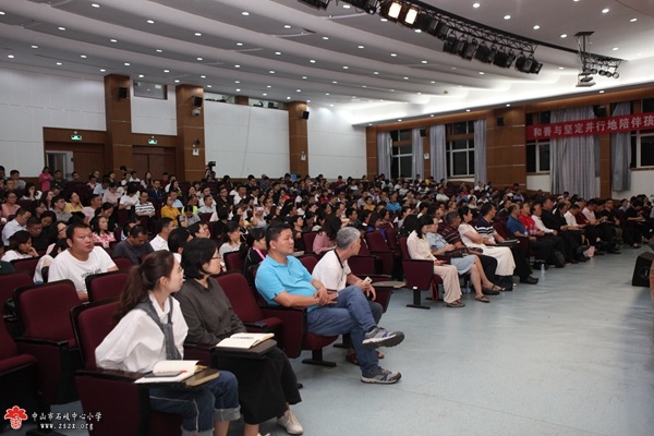 为弘扬国学,传承中华优秀传统文化,2019年10月16日晚,中山市国学促进会在石岐中心小学举办了“中山市中山市第五届国学文化周开幕式暨首场报告会”。中山市文化广电旅游局副局长吕丽珠,中山市社会科学界联合会党组成员、办公室主任卢曙光,中山市教育学会会长、广东省国学教育专业委员会副理事长陈春艳,中山市教研室传统文化教育教研员林晓洁,中山市文化广电旅游局副馆长方文,中山市国学促进会创会会长蔡国赞,副会长兼秘书长潘冬晖, 中山市石岐中心小学副校长卢超文及该校教师、家长等近二千人参加了活动。