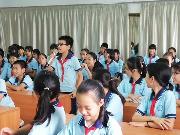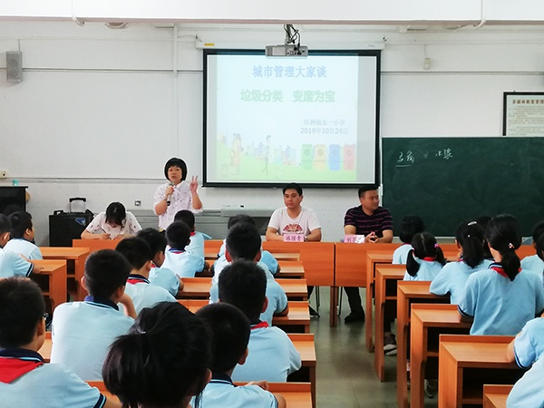 活动以“垃圾分类、变废为宝”为主题,邀请志愿者、家长和师生代表齐聚一堂,聚焦垃圾分类话题,群策群力,凝聚社会共识。家长代表刘昌鸿就“什么是垃圾”、“ 什么是垃圾分类”、“如何进行垃圾分类”以及“垃圾处理的现状”等方面,为同学们进行详细的讲解。志愿者代表林继青则针对“如何收集”、“ 如何回收再利用”等方面进行指导。在随后的互动环节,同学们把自己对垃圾分类或者回收再利用等方面的疑惑提出来,与在场的家长、志愿者以及教师们一起探讨。部分老师和学生还跟大家分享了自己对垃圾分类的理解与做法。最后,活动主持人号召全体学生:积极参与垃圾分类、变废为宝,争当环保小卫士!学生们则以热烈的掌声和响亮的“好”字作出了回应。