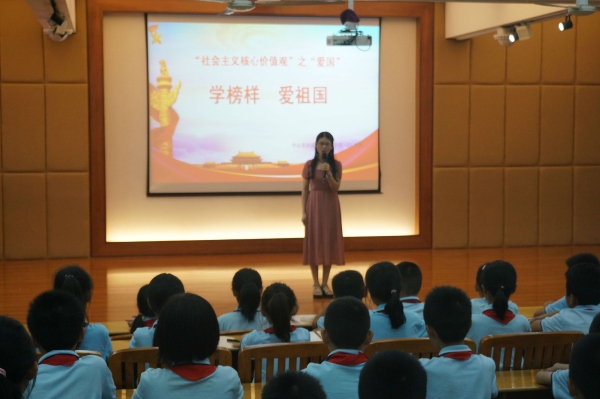 为积极响应中山市教研室关于开展中小学“爱国”德育主题班(队团)课教学活动的号召,中山市沙溪镇虎逊小学四(2)中队于2019年10月24日下午开展了以“社会主义核心价值观”之“爱国”——学榜样,爱祖国为主题的队课。在何溥彦辅导员的指导下,四(2)中队的队员们分小组筹划了这次的中队活动。当天下午,黄金奇校长还召集全校的青年辅导员来参加了此次四(2)中队的队活动。