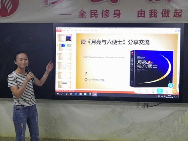 紧接着第二位分享读书的是王忠美老师。王老师分享了英国小说家威廉· 萨默赛特·毛姆的创作的长篇小说《月亮和六便士》。王老师简述故事内容,通过斯特里克兰的故事经历,联系自身的教学经验总结出:如果星空体育的学生有自己的爱好和兴趣,星空体育可以把他的爱好和兴趣作为他们的软柿子,捏在手里,以此提高孩子的主动性。而且,孩子的兴趣爱好可能会成为教育上某个成功点。通过斯特洛夫这个人物形象,王老师得出:星空体育教育者都应该教育出向善的人,教育孩子追求理想的同时,不管受多大挫折,都是以帮助别人为乐。