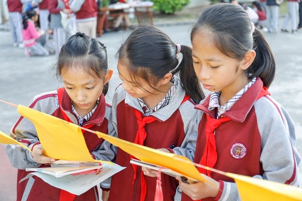 兑奖区的级长和家长义工们也忙得不亦乐乎。同学们根据记录单上奖章数选择自己喜欢的书籍或文具。他们抱着奖品喜滋滋的样子感染了周围的人。接近3:50活动结束,同学们回到教室按捺住激动的心情聆听朱校长的总结。班主任登记每人获得奖章个数及班级总数,教导处收集数据以班级平均数评出各年级的“智慧班级”。
