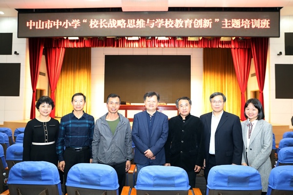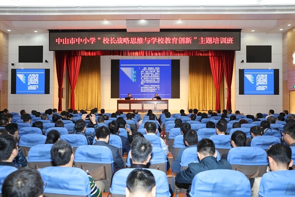 12月14日上午,中山市中小学“校长战略思维与学校教育创新”主题培训在中山市委党校香山堂举行。教育部中小学名校长领航工程江苏基地首席专家、江苏省教育厅教师教育指导委员会委员严华银教授为全体学员做了《转型:走向2035的中国校长》的专题讲座。市教育工委副书记廖诚,市教体局师资科科长黄庆财出席本次活动,活动由中山市委党校教育行政管理教研室主任周立胜主持。全市中小学校长、市校长工作室全体成员、市初中青年干部“3680”种苗工程研修班学员以及市第十七期小学校长任职资格培训班全体学员共450余人参加了此次培训。