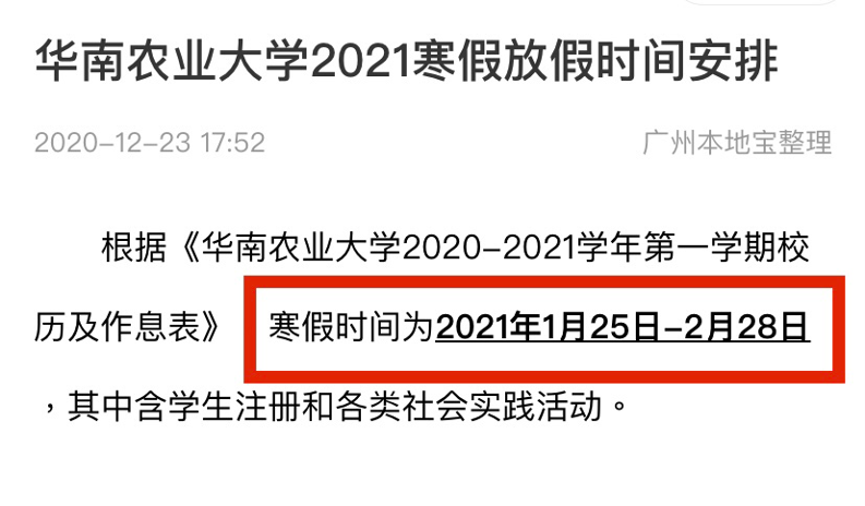 近日,广东多所高校也陆续发布寒假安排一起来看看吧!