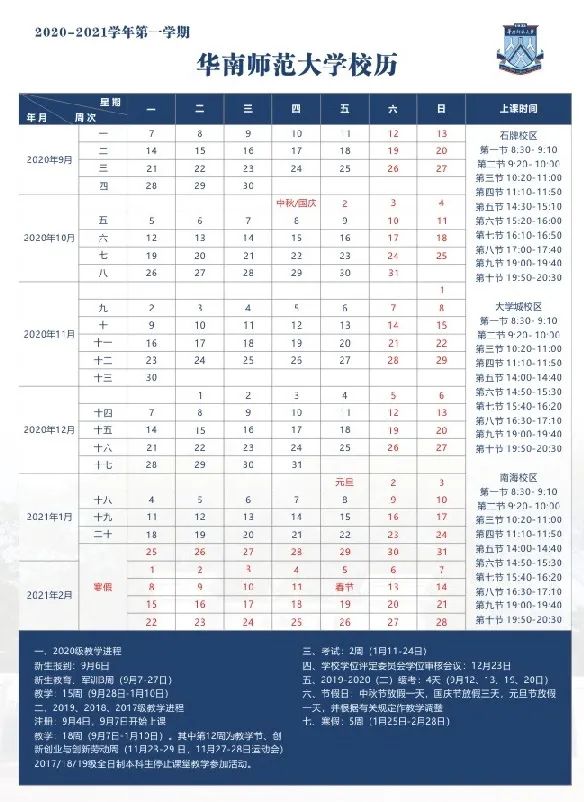 据华南师范大学的校历显示,寒假日期是2021年1月25日-2月28日。