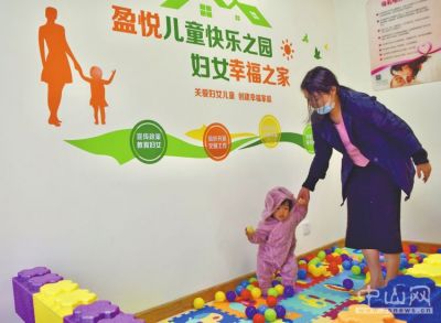 社区居民带孩子来邻里文化家玩耍。
