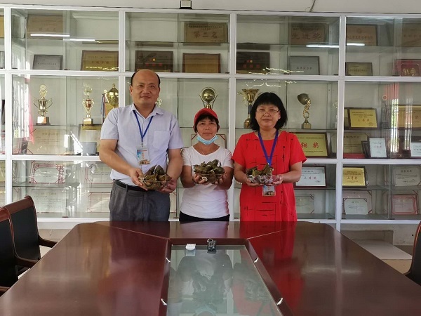 端午到,粽子香。在端午节来临之际,为了传承中华传统文化习俗,弘扬民族精神,营造欢乐祥和的氛围,家家户户都已经在为迎端午做准备。为了感谢学校一直以来对孩子的关心与帮助,6月18日早上,桂南学校初一年级学生古贵东的家长送来两百多个热腾腾的粽子赠与老师品尝。