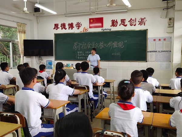 少年智则国智,少年强则国强。学生是未来的接班人,让学生从小养成良好的行为习惯,是非常重要的。在班会活动中,各班主任向学生详细阐述了社会主义核心价值观的主要内容及深刻涵义,教育学生在成长的过程中,要养成良好的道德行为规范,要做中华传统美德的传承者和社会主义核心价值观的践行者。此外,班主任们还结合当前疫情期间不断涌现的一件件感人至深的“抗疫”事迹,从个人层面加深学生对社会主义核心价值观的理解,引导学生珍爱生命、敬畏生命,培养爱国爱校、诚实守信、文明友爱的正确价值观,帮助学生进一步巩固学习内容。
