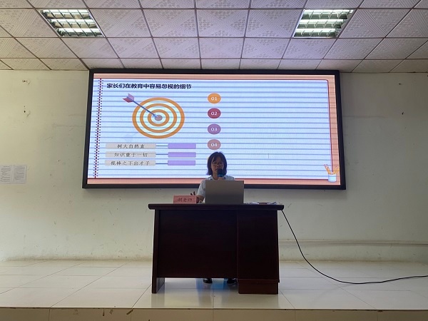 本次会议持续一天,分别有专题讲座、学校领导发言、班主任与家长座谈等三项议程。9月20日上午8:00,在桂南学校会议室展开了一系列主题讲座。首先由王祥梅老师向家长分享了《学做现代合格家长》,旨在向家长普及相关法律法规,提高家长责任意识;之后由廖结芳老师主讲了《经营和谐婚姻家庭》,廖老师介绍了营造和谐婚姻和良好家庭环境的方法,倡导良好家风建设,提升亲密关系,促进家庭和谐;紧接着张春霞主任主讲了《学习儿童成长规律》,张主任就儿童身心健康相关知识展开深入讲解,与家长共同探讨了儿童各阶段身理和心理的发展规律;最后由胡转英老师主讲了《学习儿童心理健康与安全知识》,胡老师在讲座中,与家长一起学习了儿童心理健康与心理危机干预知识,指导家长培养孩子的自我保护常识和能力。主讲老师以饱满的热情、生动的例子,从学生生活及学习等方面向家长进行详细介绍,家长对七年级学生的心理状况有了新的认知,了解了关注青春期孩子身心健康的重要性。