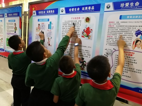 学校充分利用已经建成的学校禁毒教育基础,利用主题班会课等时间带领学生参观。通过参观禁毒教育基地,学生提高了对毒品的了解和认识,明白毒品的危害性和破坏性。禁毒教育基地展示的许多鲜活的事例告诫同学们,不要因好奇而吸第一口毒品,否则将给个人和家庭带来无穷无尽的悲痛。