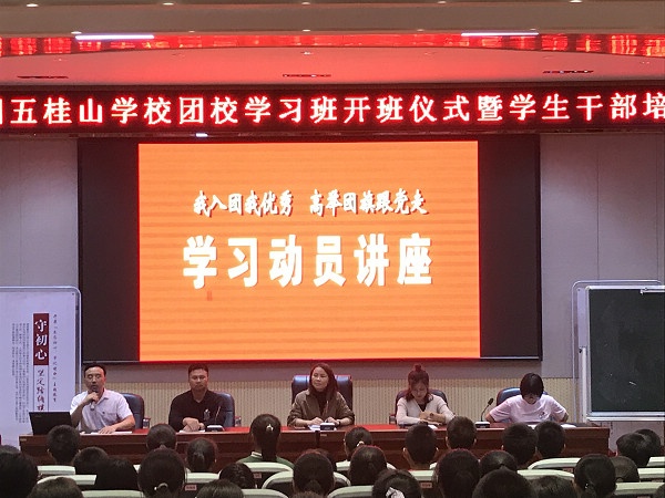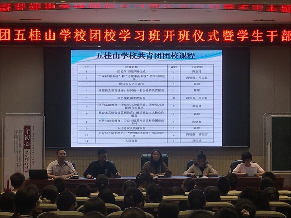 五桂山学校团委每学期都举办一期这样的团校学习班。通过团校学习,加强团员思想意识教育,增强团组织活力,并为共青团输送新鲜血液,增强共青团队伍的力量,更好地为学校、为班级、为同学服务。