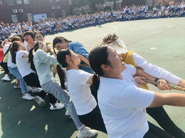 把比赛推向高潮的是教师活动比赛,昔日站在讲台上的教师们,现在站在了比赛场上,一下子就成为了全体学生关注的焦点。此时此刻,他们为了自己小组,全力拼搏,赛场旁边的同学们也兴奋地给老师们加油,听到了学生们的助威,老师们赛的更起劲了,在热烈的欢呼声中,本届运动会圆满地划上了句号。