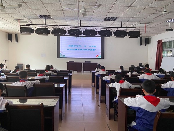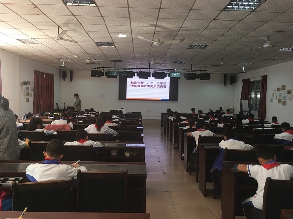 为提高学生对语文学科的学习兴趣,激发学生学习积累古诗词的热情,使学生养成多读书,多感悟的好习惯,同时考查学生对应掌握古诗文的积累情况,桂南学校小学部本学期开展了“润泽少年 书香校园”古诗词积累活动。