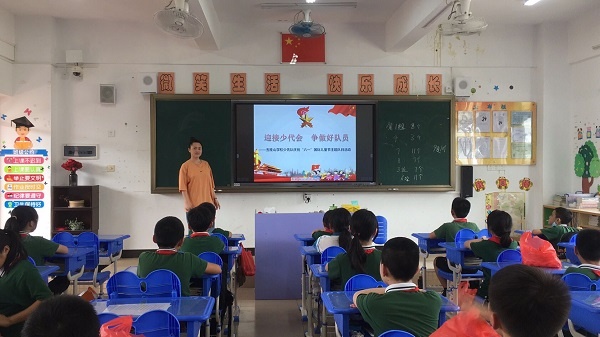 为开展本次活动,师生代表们积极配合大队部做好各项前期准备工作。活动当天,“致敬先锋 争当抗疫小卫士”活动分享、教师代表祝福、抗疫事迹分享、出旗、唱队歌等环节通过钉钉直播方式举行,各班以中队为单位在课室观看、参与活动。活动中,学校党支部陈玉玲书记通过视频给同学们送来寄语:希望孩子们心怀感恩,珍惜时光,努力学习,积极锻炼身体,心有榜样,将来做一个对国家、对人民、对社会有贡献的人才。
