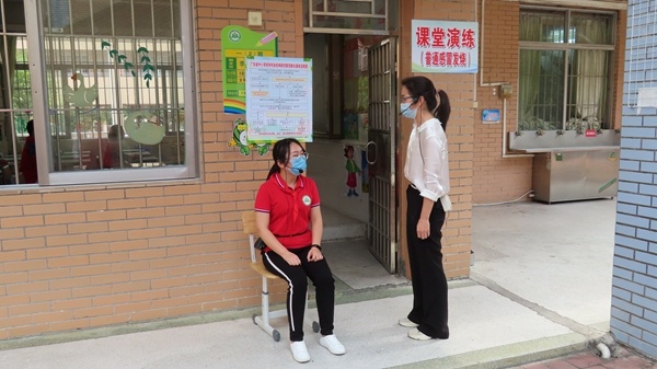 第二个预设场景是课堂演练,模拟课堂上学生出现身体不适、有发热、呕吐和轻微咳嗽症状的处置流程。第三个预设场景是课间演练,模拟课间活动的情景,对学生进行课间活动指引。第四个预设场景是饭堂演练,模拟师生就餐的情景,对师生就餐秩序进行指引。第五个预设场景是宿舍演练,模拟宿生出现咳嗽、发烧等症状的处置流程。