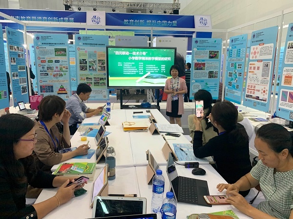 在三天的教博会上,“小学数学‘四元联动-技术介导’精准教学模型的构建与实践”展位前迎来了来自全国各地的校长、小学数学教师,甚至高校学者对这一研究成果的关注,他们一致认可对教学精益求精的追求,赞赏项目组精细的研究成果,并与李老师交换了联系方式,提出后续学习交流的意向。
