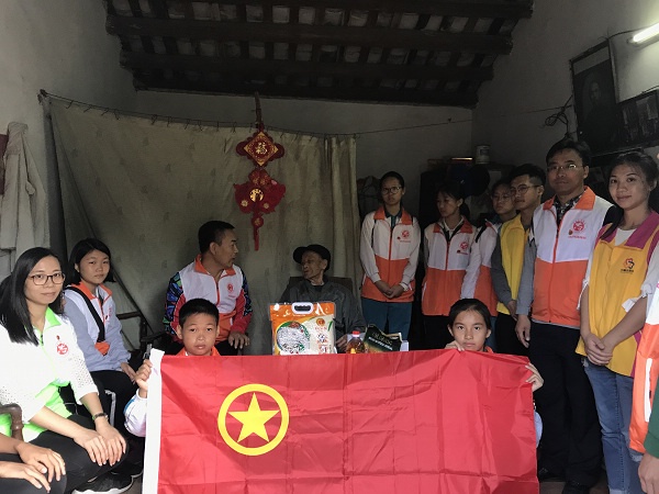 活动当天,在五桂山办事处团工委书记陈惠宜、五桂山办事处团工委干事刘素贞、五桂山学校党支部书记刘继恭、五桂山学校中学部德育主任刘伟雄、五桂山学校团委书记冯锐强、团委委员邓运良以及五桂山城管工作人员等的带领下,慰问组一行二十余人分别慰问了家住石鼓村的老人、困难学生家庭共三户,给他们送去了油、米、奶粉、麦片等慰问品。志愿者们先是来到了一家彭姓老人的家里,给老人送上了慰问品后,志愿者们和老人聊起了家常,询问老人的生活情况、身体状况,了解老人的想法和需求,有些志愿者还给老人讲解预防和处理突发事件的知识。大家有说有笑,特别是在学生志愿者的青春热情的感染下,老人露出了喜悦的笑容。在征得老人同意的情况下,志愿者们分工合作,帮助老人扫地、拖地、擦窗、抹桌椅,大家团结协作、发扬不怕苦、不怕累、不怕脏的雷锋精神,把老人家里家外打扫得干干净净、收拾整整齐齐。老人对志愿者们的辛勤付出表示感谢,并和志愿者们一起合照留念。之后,志愿者们走访了两家困难学生家庭,给他们送上了慰问品和关爱。