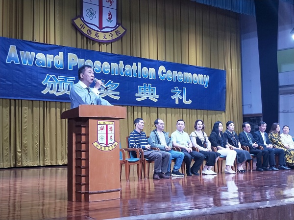 2018年11月21日,中港英文学校在中学部礼堂举行了2017--2018学年奖学金颁奖典礼,中港英文学校董事长蔡国赞博士、中学部校长刘朝荣先生、中学部家长委员会成员、部分获奖学生家长以及全校师生共同见证了本次活动。