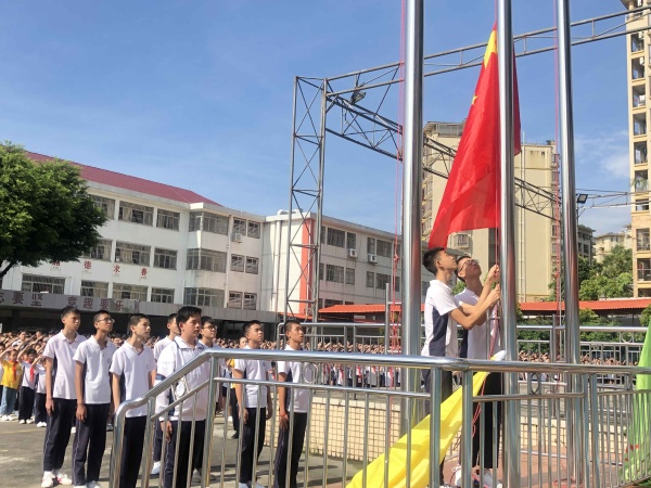 随着激昂的国歌响起,五星红旗冉冉升起,全体师生肃立注目,高唱国歌,向国旗致以崇高敬意。