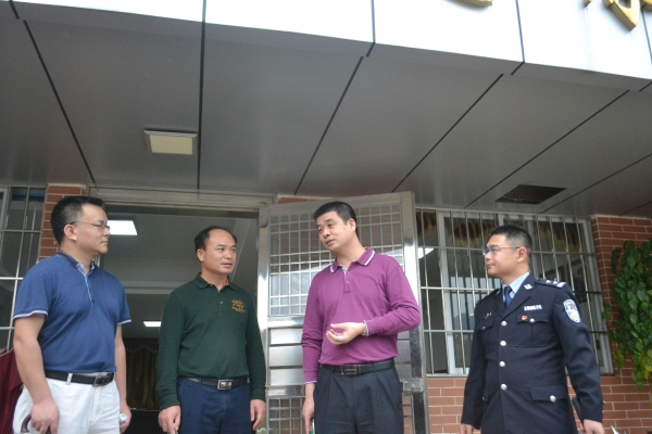 为了规范和加强学校安全管理工作,防止安全事故发生。3月29日下午,中山市教体局副局长李有林在五桂山公安分局局长段家兵和区教育事务指导中心主任唐东波,张方老师的陪同下,莅临中山市龙泉学校检查校园安全工作。龙泉学校校长黄飞跃、德育主任郑国辉、总务主任彭德平等一起陪同了检查。