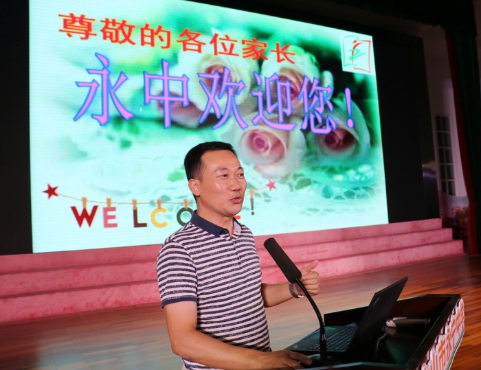八月底,中山市永宁中学美丽的校园内又迎来了493名青涩又充满朝气的面孔。在经过三天的国防教育和两天的学前培训后,为了更好地让新生家长了解学校情况及初中生活,学校特地召开了初一新生家长会。8月27日晚8点整,全体初一新生家长在经过校门口测温和查验粤康码后,整齐地聚集在学校体育馆。会议由学校德育处戴放良主任主持。会议首先对学校的行政班子及初一年级的班主任团队进行了介绍,接着由学校党支部书记、校长陈清茂同志介绍学校的历史、发展历程、办学理念及取得的荣誉。