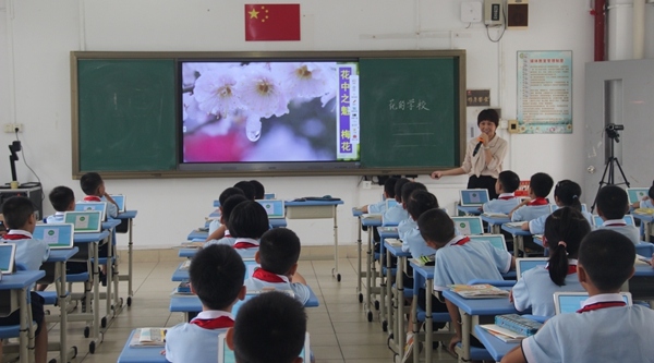 接着,梁雪芬副主任为大家展示一节尝试用平板辅助教学的智慧课堂,本节课梁主任充分展示了其对平板电脑教学的熟练运用,以平板、PPT课件、以及学生熟悉的图片为教学媒介,开展各种生动有趣的教学活动,同学们争先恐后地抢答问题,极大地激发了学生的学习热情。