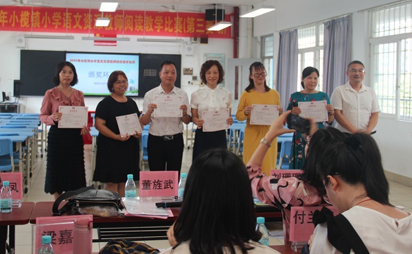 最后,董旌武校长宣读比赛结果并颁奖,并与在座的评委老师和参赛老师合影留念,2020小榄镇小学语文资深教师阅读教学比赛(第三赛场)圆满落下帷幕!