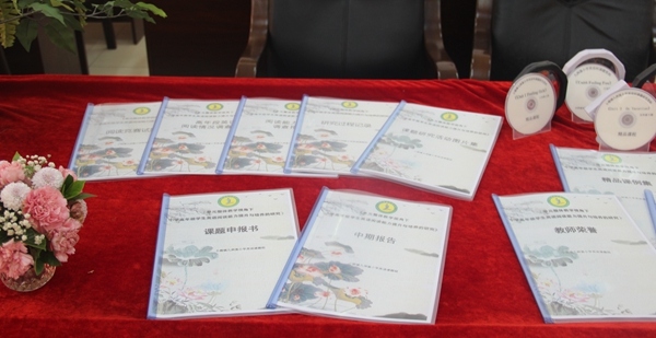 第三议程是课题中期汇报。由课题主持人司徒咏老师代表课题组成员在二楼教师会议室作课题研究中期汇报。司徒咏老师的发言自信大方、铿锵有力,主要从研究背景、目标、内容、思路、方法、课题创新之处、中期成果等方面向与会专家、领导和老师们作了详尽的汇报。在汇报中,她指出本课题研究始终把激发学生英语阅读兴趣,提升学生英语阅读能力和英语思维能力放在重要位置,努力打造有特色的单元整体视角下的阅读教学。同时,她也提出了她对此课题研究的疑难困惑和后期展望。