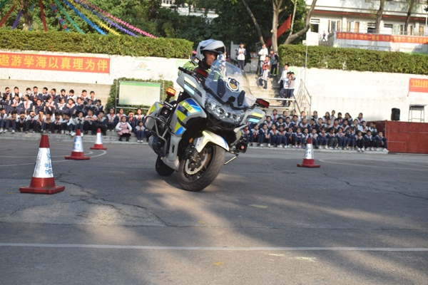 活动最后,进行的是“铁骑展示和互动”环节,交警铁骑队员们为同学们表演了铁骑骑行、绕桩等风采展示,铁骑队英姿飒爽,一展风采,让现场的同学们拍手叫好、掌声不断。表演完毕后,铁骑队员们与同学们进行了亲切的互动,不少同学在铁骑队员的帮助下,穿戴上铁骑日常装备,体验铁骑的工作,感受铁骑的使命,还对铁骑队员提出了许许多多的心中的小疑问,铁骑队员都进行了耐心回答并与同学们合影留念。