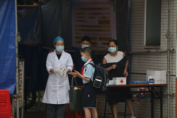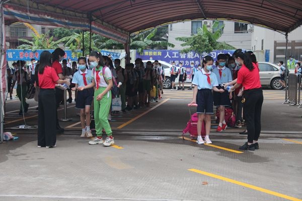 白雨跳珠飞花,绿枝水光潋滟。九小翩翩学子,少年风华正茂。2020年5月18日,中山市小榄镇九洲基小学四到六年级在风雨中迎来了开学日,小榄镇党委副书记曾顺秋先生、小榄镇教体局副主任曾文春先生和小榄镇教体局副主任李平生先生莅临指导监督。